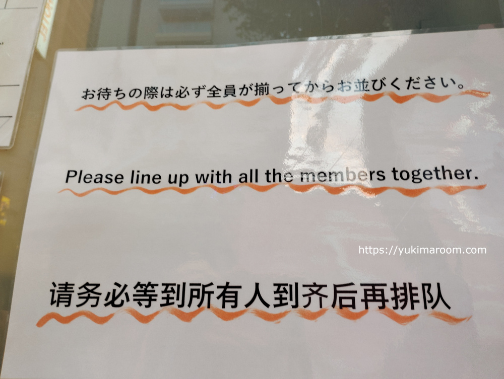 着いたのはたぶん18時過ぎでしたが、平日でもすでに10人ほど並んでいました。こんな張り紙が